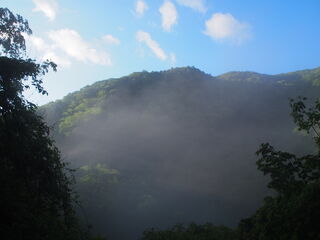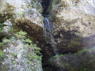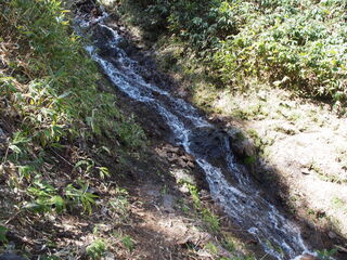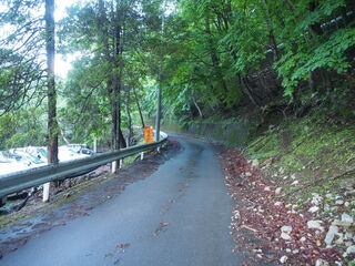 前日の雨の影響か、山肌から水が染み出して路面を流れていきます