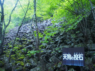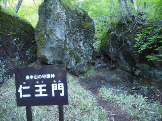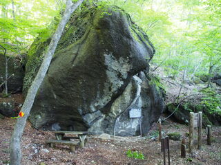 途中、鏡岩のベンチで一休み