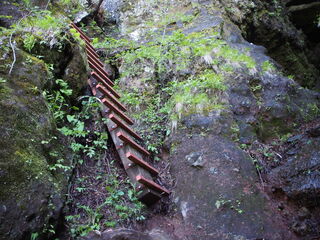 岩が濡れているので慎重に下ります