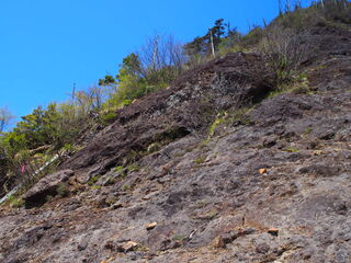 庚申山に向かって急な斜面を登っているとなんとなく変な臭いが