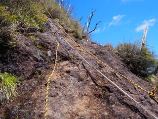 その先には鎖とロープの下り