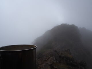 ツクモグサも満喫し、雨が降りそうになってきたので風を避けられる所まで戻ってキャラメルマキアートタイム