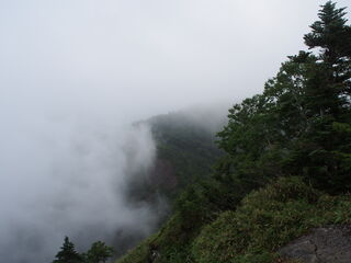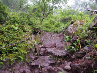 登りはガスガスで見えませんでしたが、金精山はなかなか険しい山です
