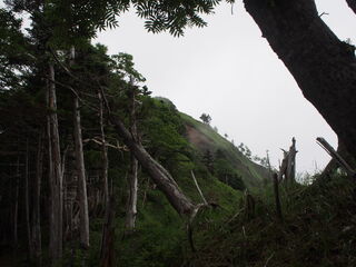 日が差してないので酷く暑くはないですが、風があまりないのでゼーゼーいいながら登っていきます