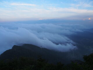 暗くなってきたので再び女体山に来ましたが、完全に雲の中に入ってしまって夜景も見えないので下ることに