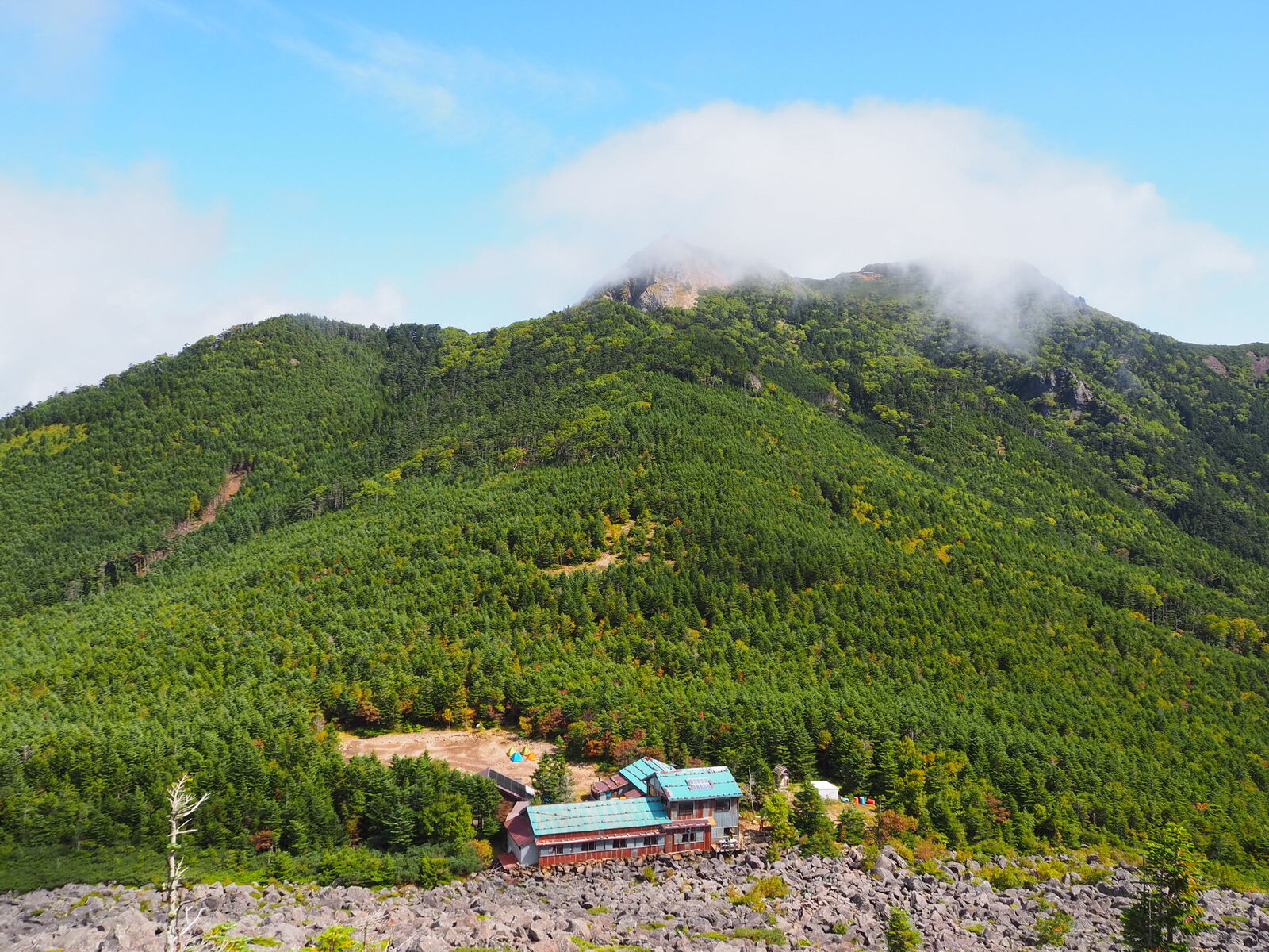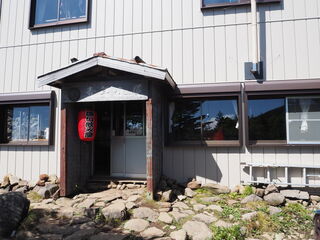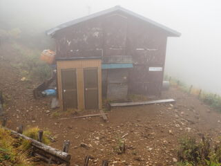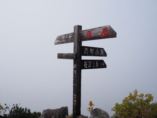 山頂で休憩にしようかと思ってましたが風があって寒いので小屋まで下ろうと進みます
