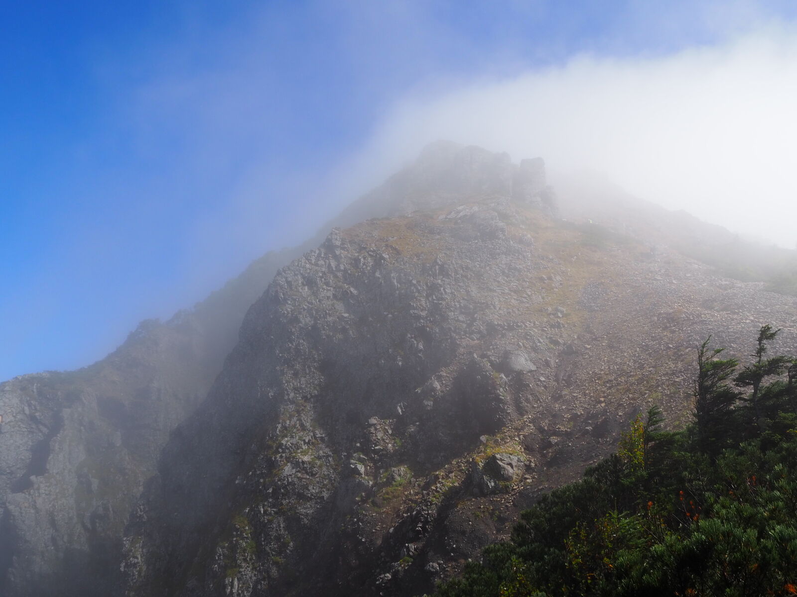 予定では大同心のバリエーションルートに行こうと思ってましたが、前日の夜から近くの道の駅で車中泊していたところ、明け方に結構な雨