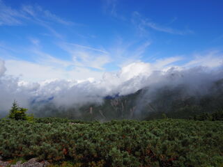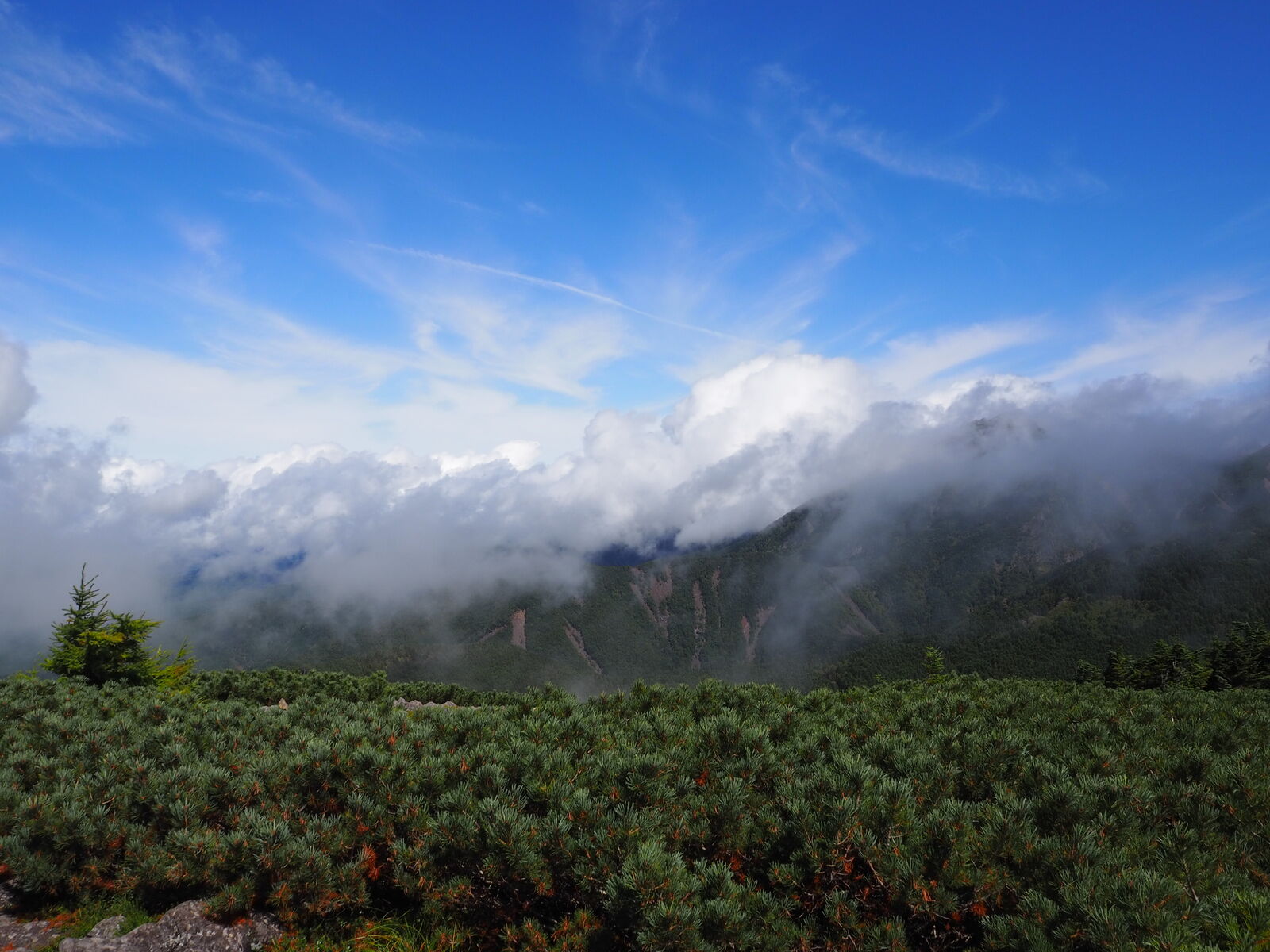 ハイマツとシャクナゲをなんとかかき分けて進みます