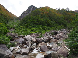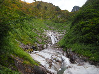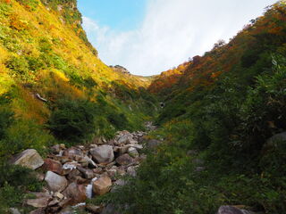 最初のうちは基本的に山頂に向かって沢の左側を登ります