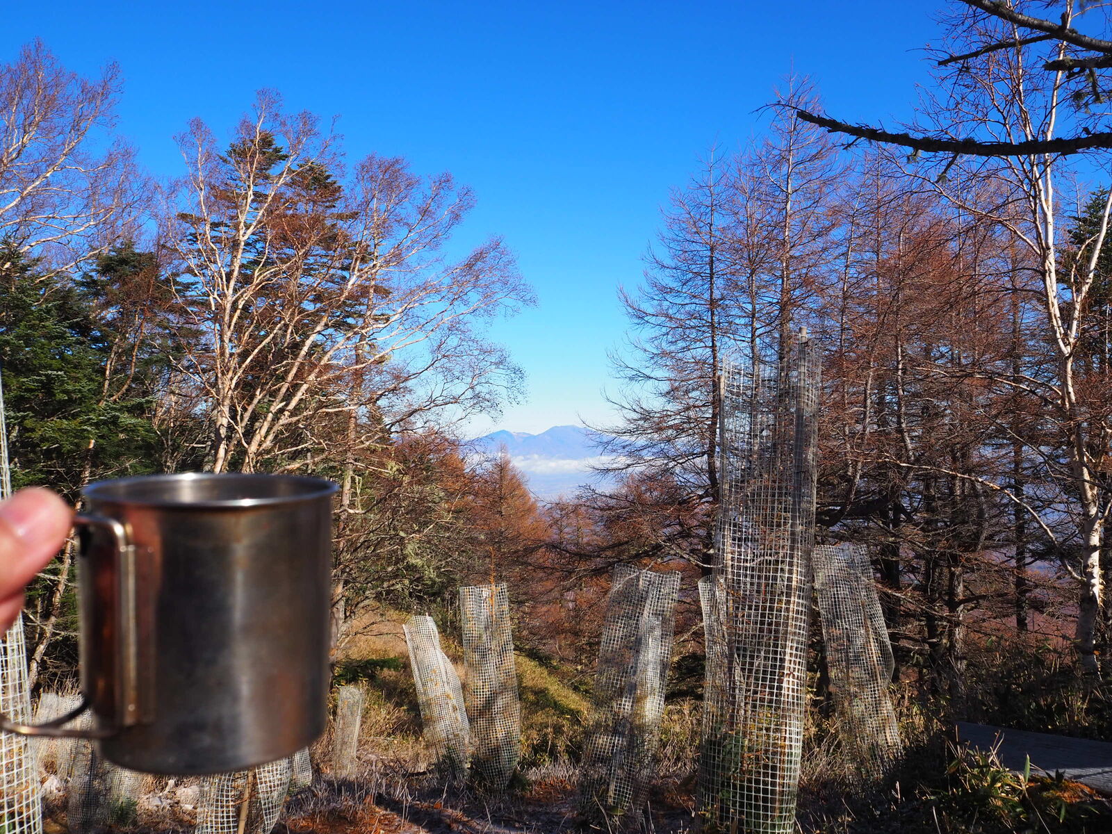 風はあまりないので浅間山を見ながらキャラメルマキアートタイム