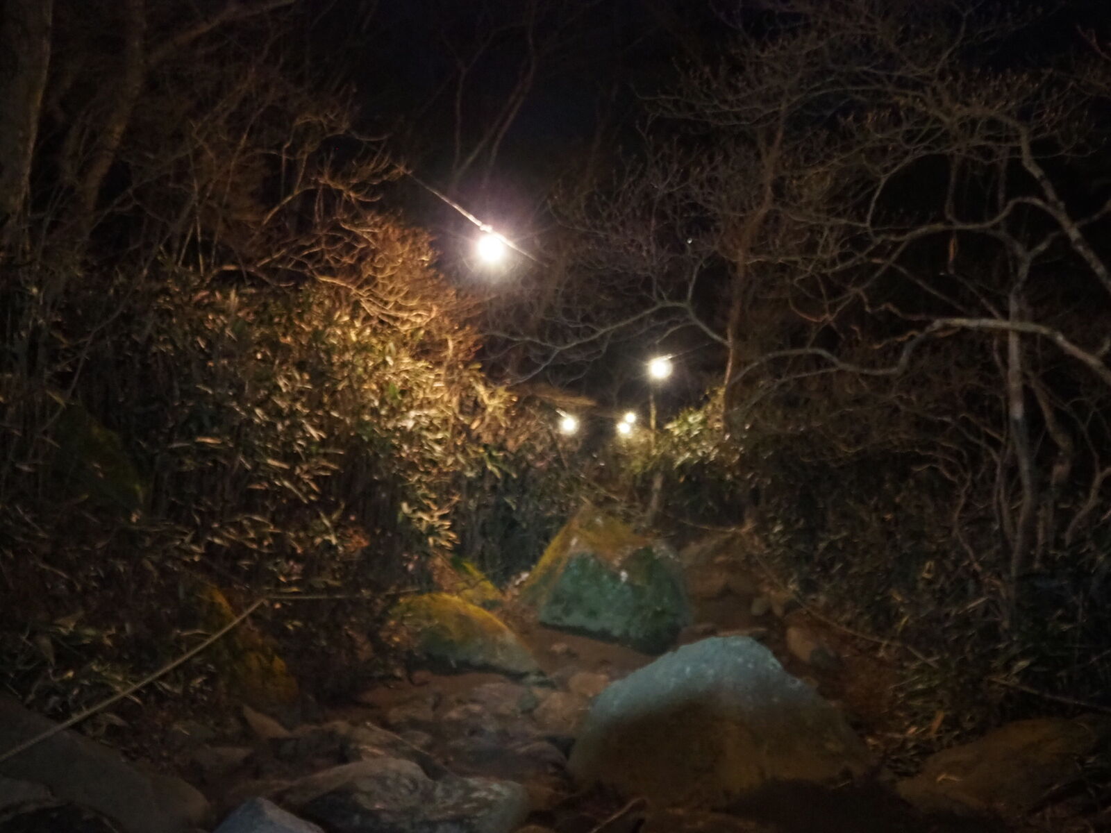 2025.12.29 筑波山【百名山】ホームで登り納め 登山記録 2025.12.30 コースタイム 駐車場 国民宿舎跡 123 537 708*61 土浦北IC から 28km 44分 Googleマップで見る 「マップコード」および「MAPCODE」は(株)デンソーの登録商標です。 温泉 あけの元気館 https://akenogenkikan.com/ 123 588 553*51 Googleマップで見る GPSログ 1ポイント/秒 2ポイント/秒 5ポイント/秒 10ポイント/秒 20ポイント/秒 50ポイント/秒 download GPX (右クリックで名前を付けて保存) 登山記録 今年の登り納めとして筑波山へ来ました キャンプルート登りの国民宿舎跡ルート下りです 18:30 国民宿舎跡からスタート 18:40 キャンプ場分岐 キャンプ場の改修をしているので通行止めになってます 18:50 キャンプ場駐車場 改修工事中で登山道に迂回路が付けられてます 19:20 女体山 夜景がきれいです 男体山に向かいます 連絡道の中の茶屋から御幸ヶ原までの照明が点いてました 19:30 御幸ヶ原 19:35 男体山 御幸ヶ原 19:55 下山 登り納め終了 このあとはあけの元気館で温泉納めしました 登山記録メニューへ 書籍 2021年度版 20 山と高原地図 赤城・皇海・筑波 榛名山 (メンズ、レディース)価格:1100円(税込、送料別) (2021/7/28時点)楽天で購入
