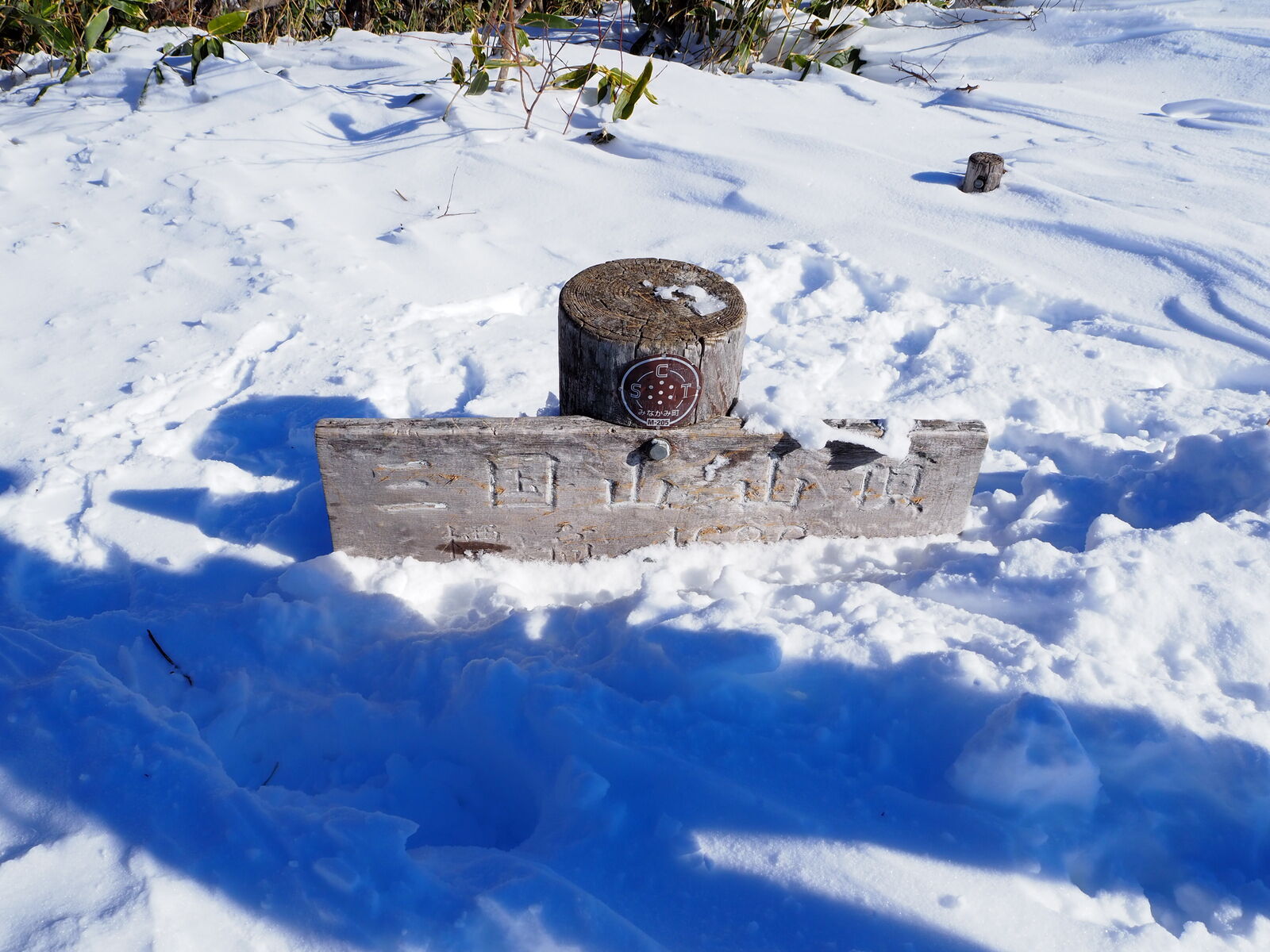 山頂直下は階段が出てますのでスノーシューを外して歩きます