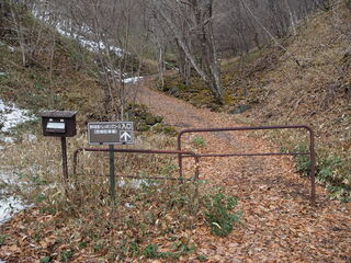 この先は雪があるのでスノーシューを付けます
